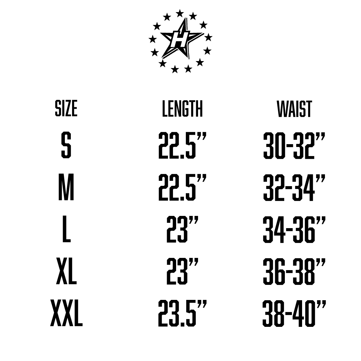 Size chart included on last slide